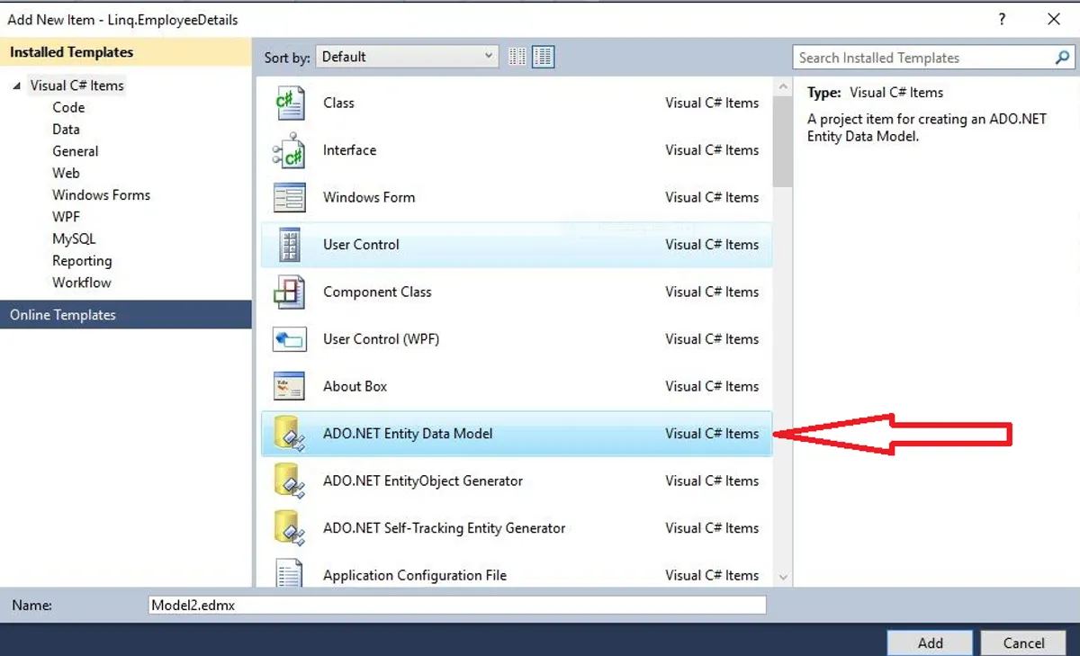 Now I will explain the steps to configure and add Linq to Entity Data Model framework and also how to connect it with the database: